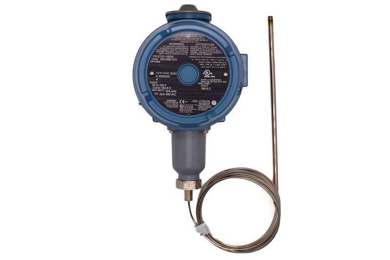 Industrial grade, line sensing (pipe sensing) thermostat ideal for freeze protection and process temperature maintenance applications in classified/hazardous areas